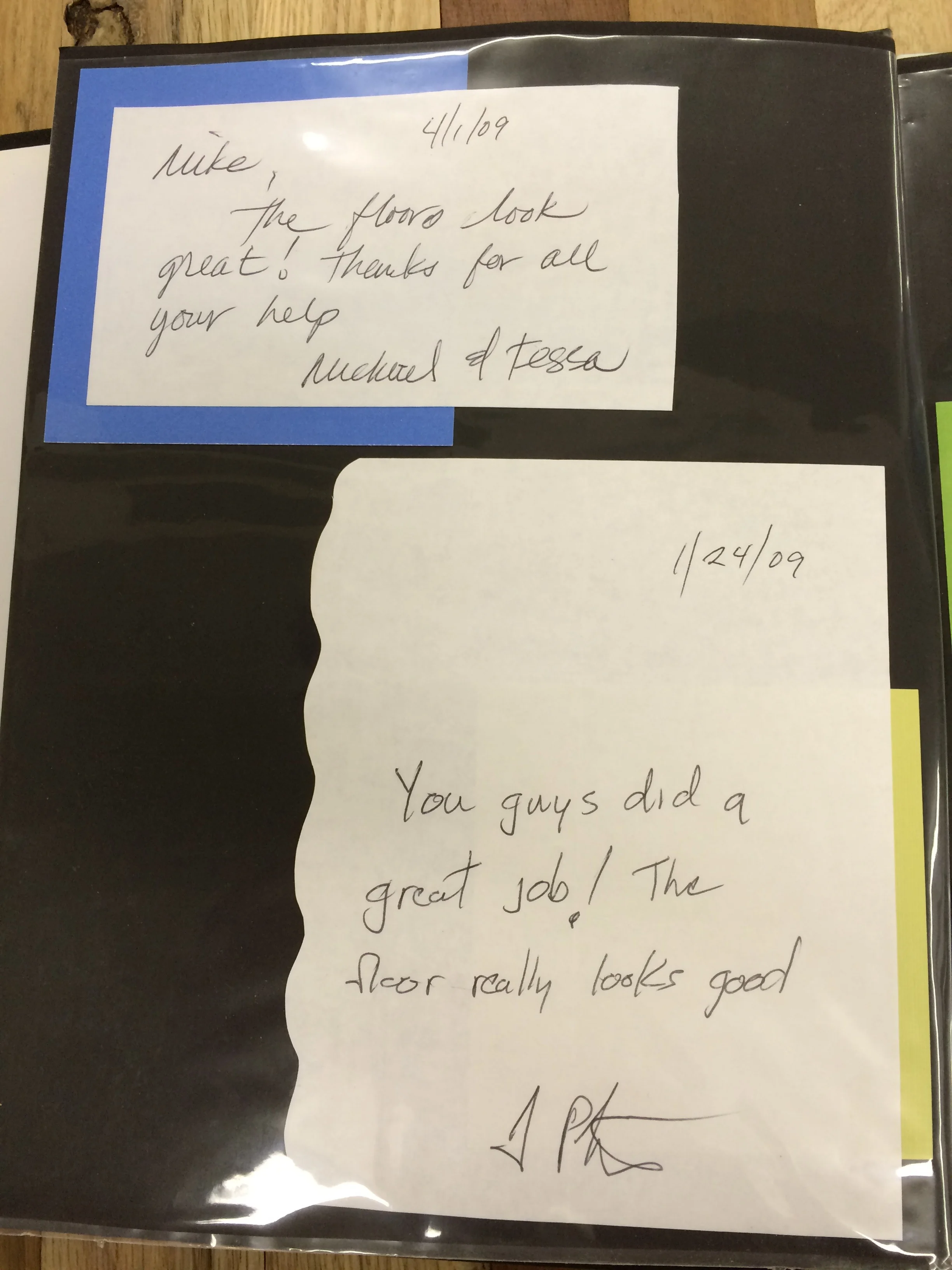 This is a compilation of unsolicited thank you's and words of appreciation that our customers have mailed to us after job completions. We at Joos Hardwood Floor keep all words of appreciation and love reading and hearing about how our work positively affects the lives of our valued customers.